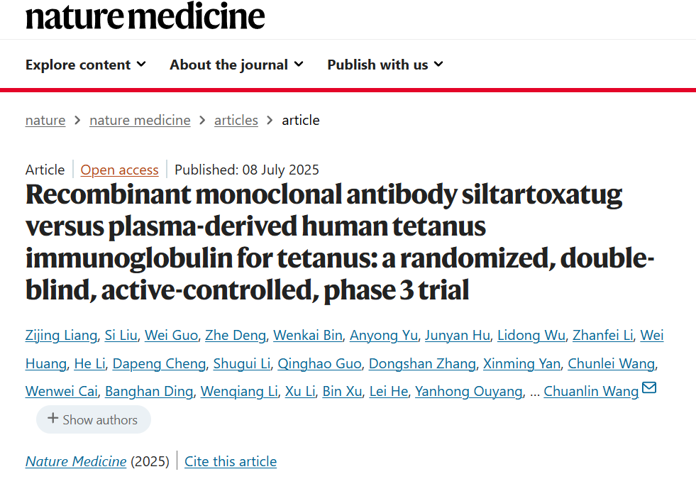 近日,位于金湾区珠海国际健康港的珠海泰诺麦博制药股份有限公司自主研发的全球首创抗破伤风毒素单克隆抗体新药——斯泰度塔单抗注射液(商品名:“新替妥”)III期临床试验结果登上国际顶级期刊《Nature Medicine》,与全球分享珠海智造的创新成果。
